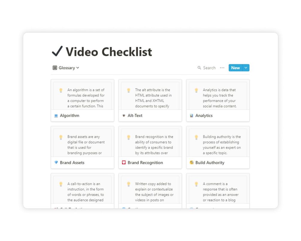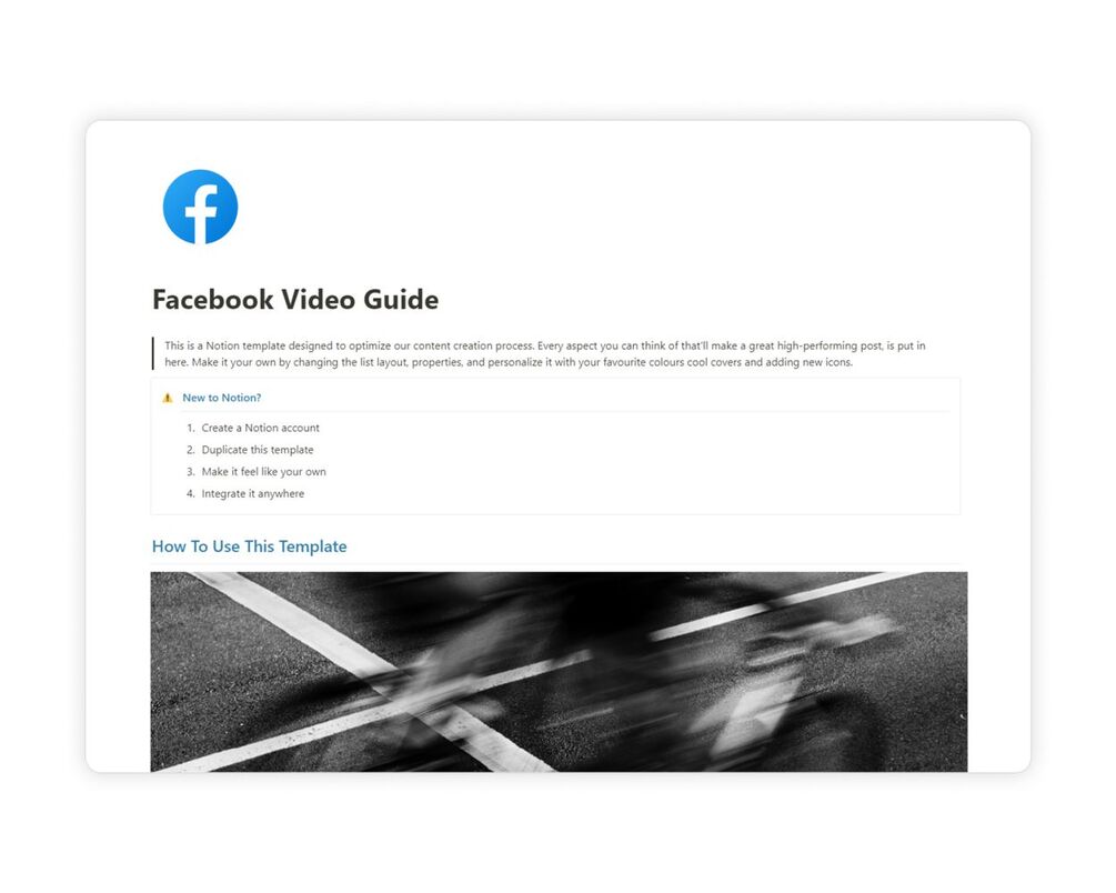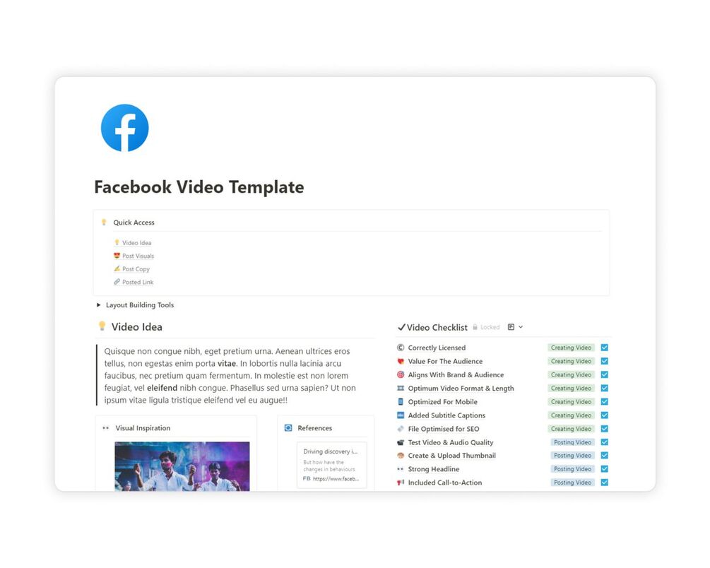 The Facebook Video Content Template - Created using Notion.so