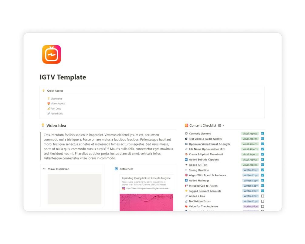 The IGTV Content Creation Template - Created using Notion.so