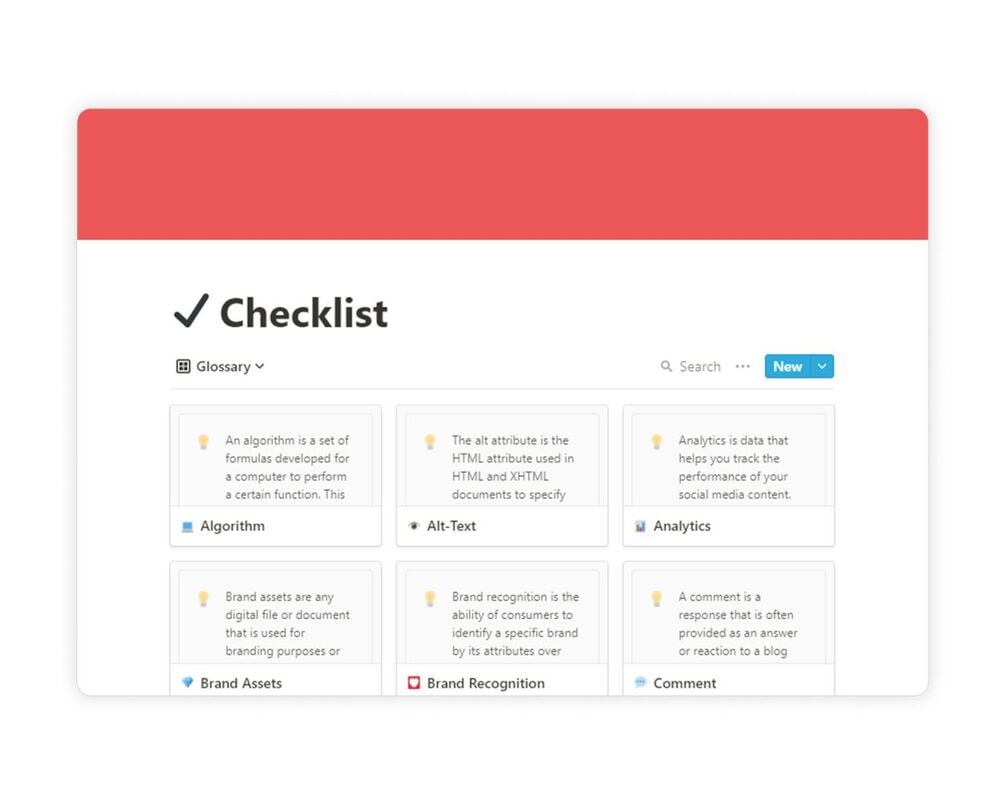 To add extra value to you, I’ve included a list of post ideas & a dedicated anti-marketing-jargon glossary page in the checklist section 😉