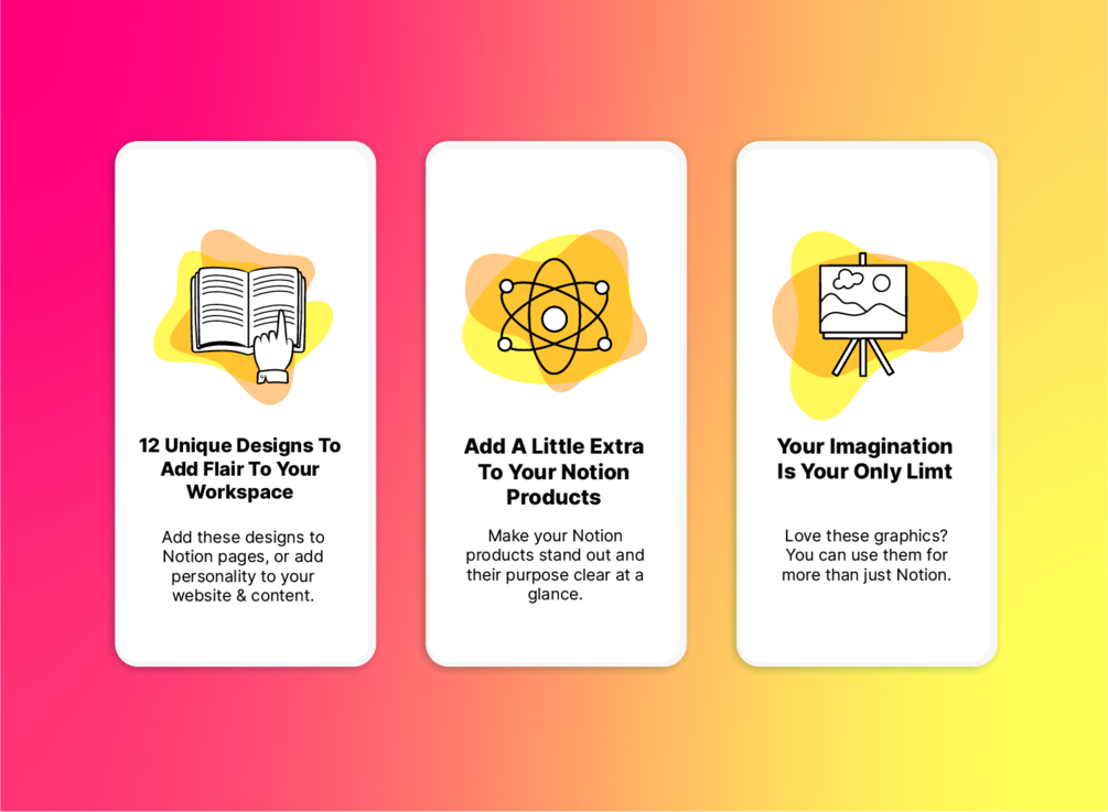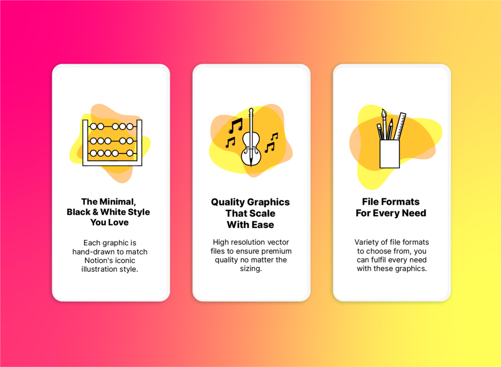 This icon pack was designed in the same minimalistic black and white style you've likely seen on Notion.so. Each is drawn by hand and recreated in vector format, you can rest assure that your new icons will scale with ease without losing any quality in the process.