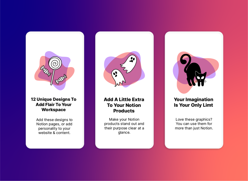 Happy Halloween 🎃 The spookiest time of the year deserves a matching Notion planner don’t you think? This fun and quirky icon pack contains 12 delightfully minimal Halloween icons to help you get on top of your trick or treating preparations. Have fun exploring your dark side.