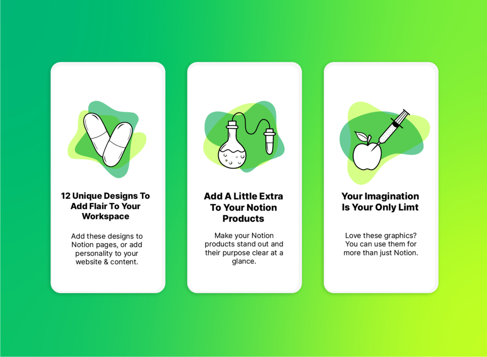 This icon pack was designed in the same minimalistic black and white style you've likely seen on Notion.so. Each is drawn by hand and recreated in vector format, you can rest assure that your new icons will scale with ease without losing any quality in the process.